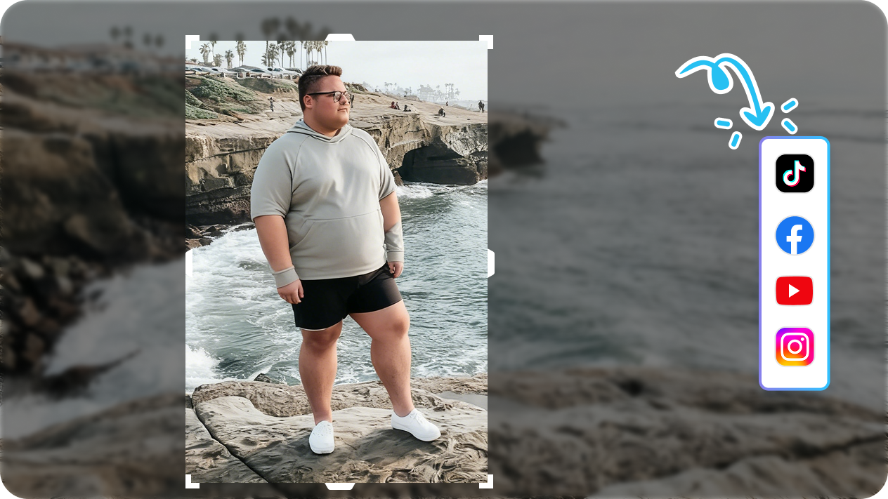 Ensure ready-to-share fat photos in realistic, high-quality formats and sizes in seconds with Pippit's AI photo editor. Freely crop or expand your pics to fit a wide range of aspect ratios for social media sharing or printing. Enjoy an auto-export solution and a scheduling management system to share content across platforms. No matter what you want to share, from friend pranks to business uses, Pippit lends you a hand in seconds.