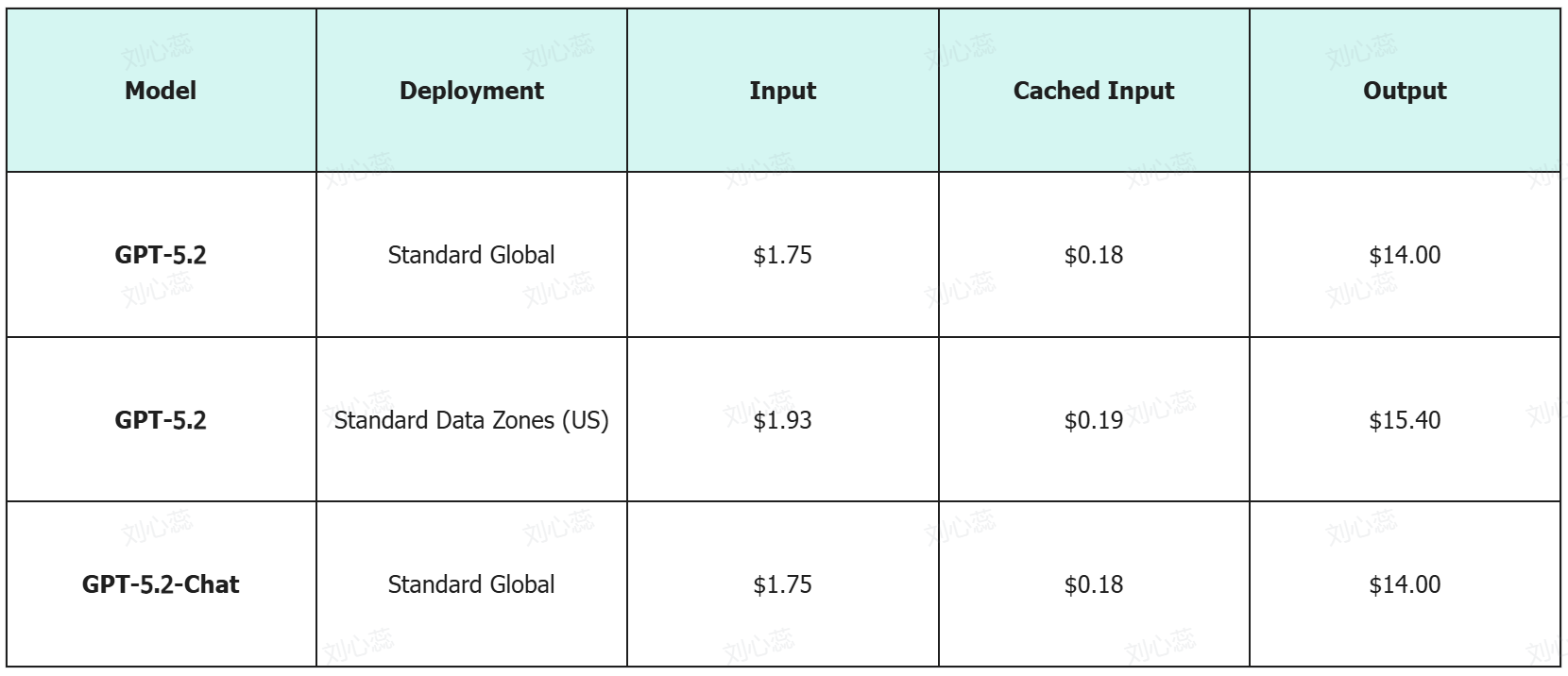 Το ChatGPT-5.2 είναι διαθέσιμο μέσω πολλαπλών επιλογών ανάπτυξης, με ευέλικτη τιμολόγηση βάσει χρήσης και περιοχής. Ο παρακάτω πίνακας αναλύει τη δομή κόστους για να βοηθήσει τους χρήστες να κατανοήσουν την τιμολόγηση για την εισαγωγή, την αποθηκευμένη εισαγωγή και την εξαγωγή.