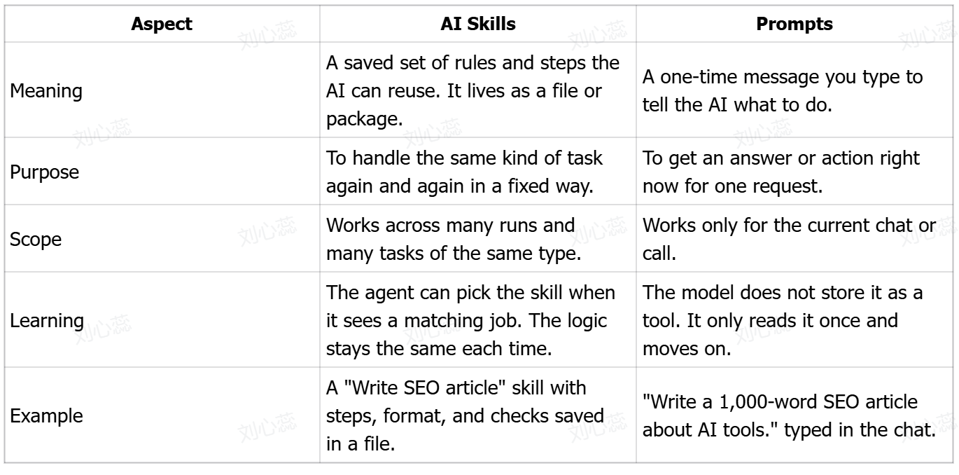 ¿Cuál es la diferencia entre habilidades de IA y prompts?
