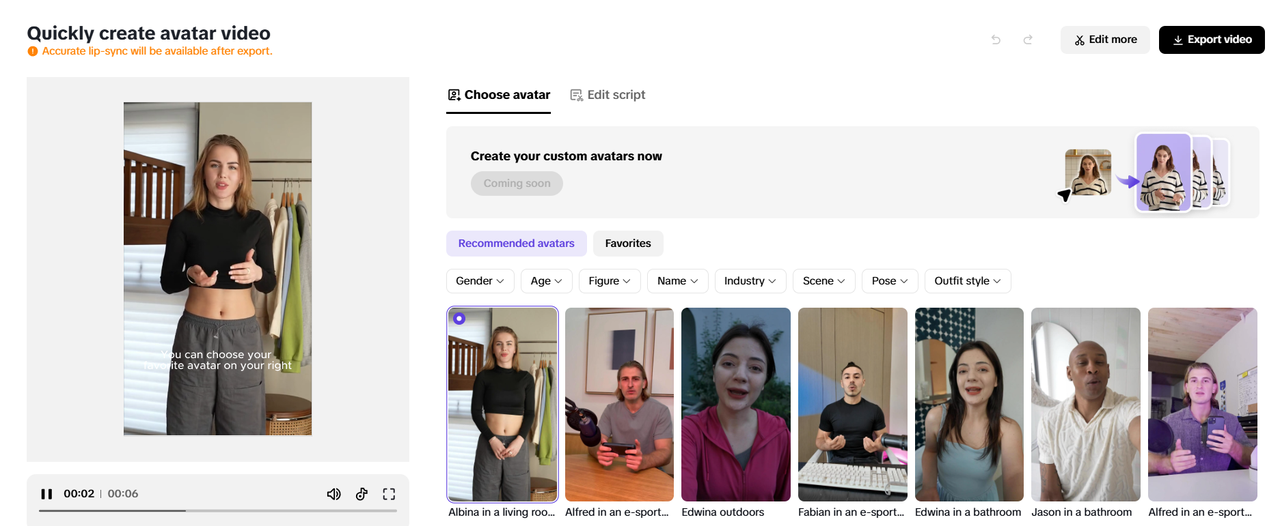 A Pippit permite que você adicione avatares de IA personalizados e narrações aos seus vídeos, dando ao seu conteúdo um toque único e personalizado. Você pode escolher entre uma variedade de avatares ou criar o seu próprio para alinhar à identidade da sua marca. As vozes geradas por IA garantem narrações claras e profissionais, tornando seus vídeos mais envolventes. Este recurso é ideal para tutoriais, demonstrações de produtos e conteúdos promocionais.