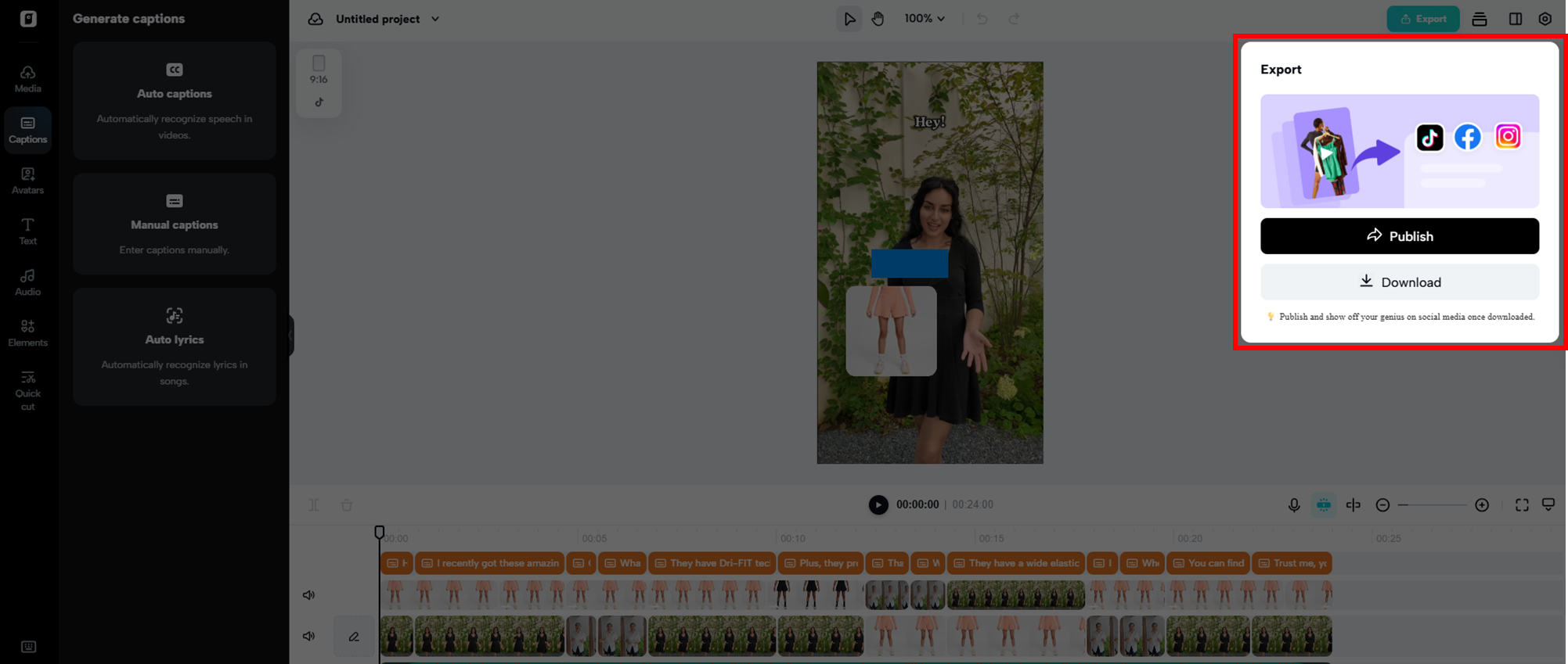 Take a moment to review your AliExpress product video and make sure all elements are polished. If necessary, apply last-minute edits for maximum impact. Once satisfied, hit "Export" and choose to publish directly on social platforms like TikTok, Instagram, or Facebook—or download it to your device. Customize export options such as resolution and frame rate to optimize video performance. Your dropshipping video is now set to engage your audience and increase conversions.