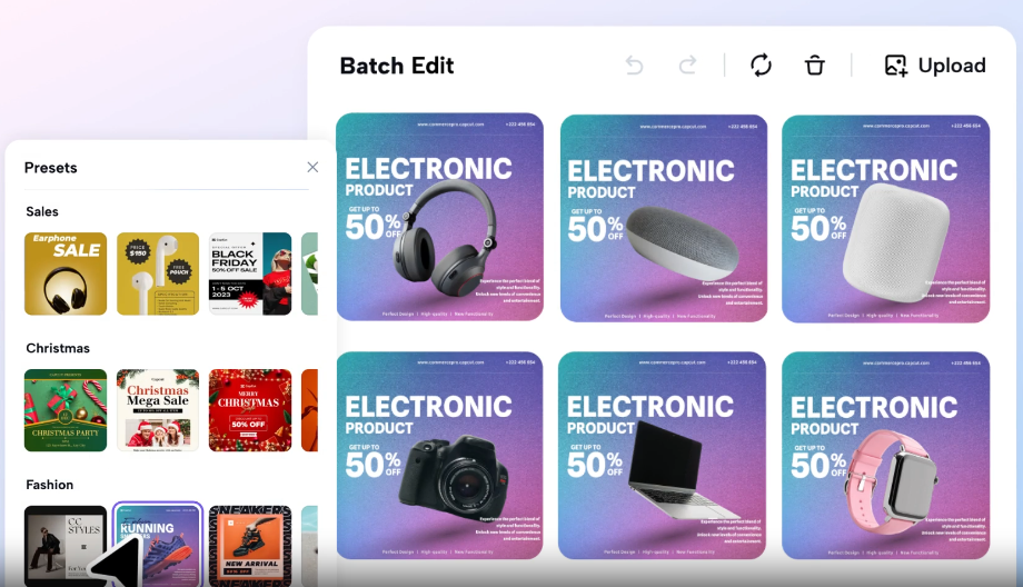 - Batch Ad Creation: For businesses needing ads for various products or platforms, Pippit’s batch editing lets you create multiple ads simultaneously. This feature is perfect for saving time while maintaining a consistent look across all your ads.