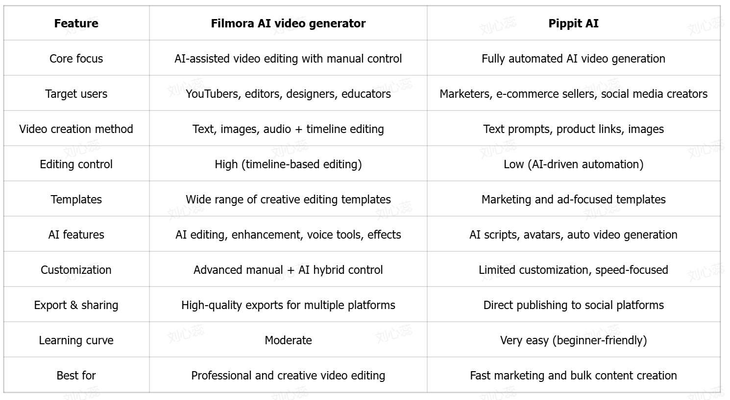 Both tools are designed for modern AI video creation but serve different needs and workflows. Filmora AI video generator focuses on a hybrid approach with strong manual editing control and AI assistance, while Pippit AI focuses on fast, fully automated video generation. The choice depends on whether users prefer creative control or quick, automated content creation.