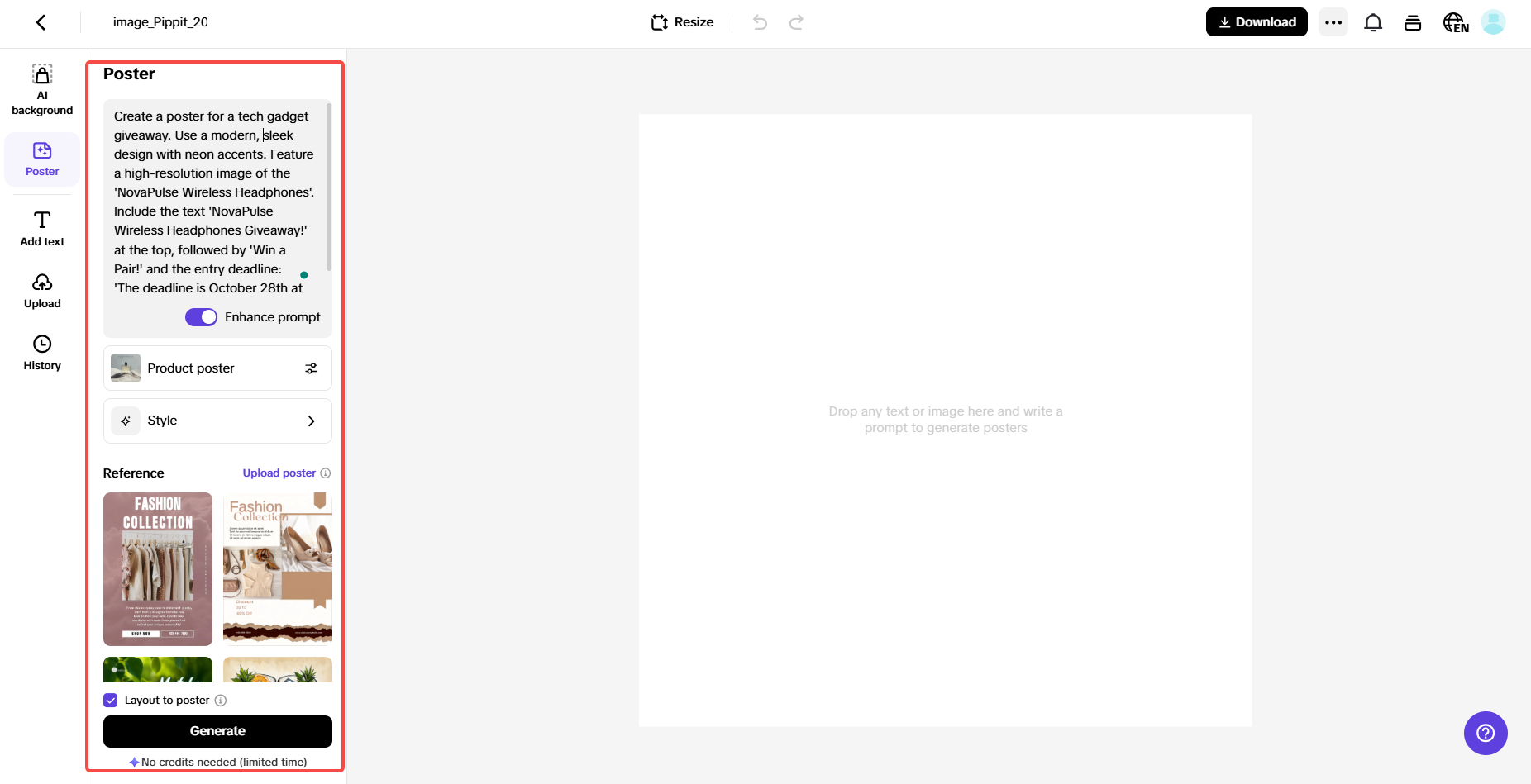 How to create promotional giveaway content with Pippit