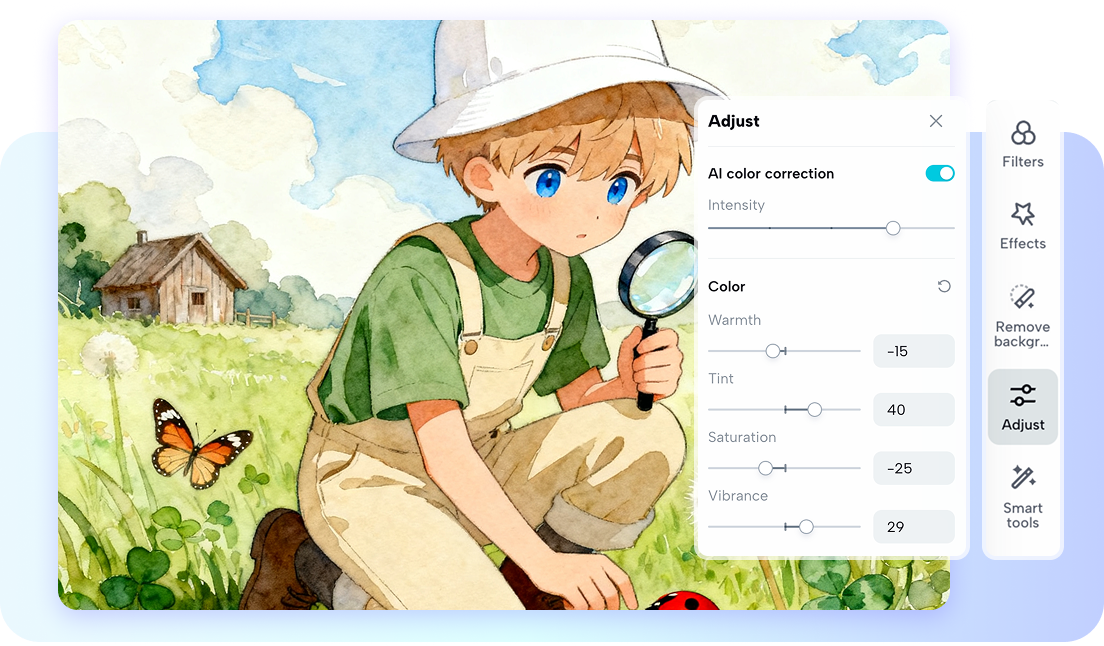Once you've created the variations, Pippit also offers built-in editing features to edit every variation made. You can easily regulate brightness, contrast, saturation, and other visual parameters. The photo editor also allows for selective modifications to ensure every variation meets your creative vision. This hybrid of manual input and AI generation guarantees you beautiful, broadcast-quality graphics that are perfect for any project.