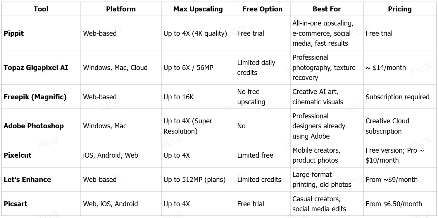 Таблиця порівняння найкращих інструментів для покращення зображень